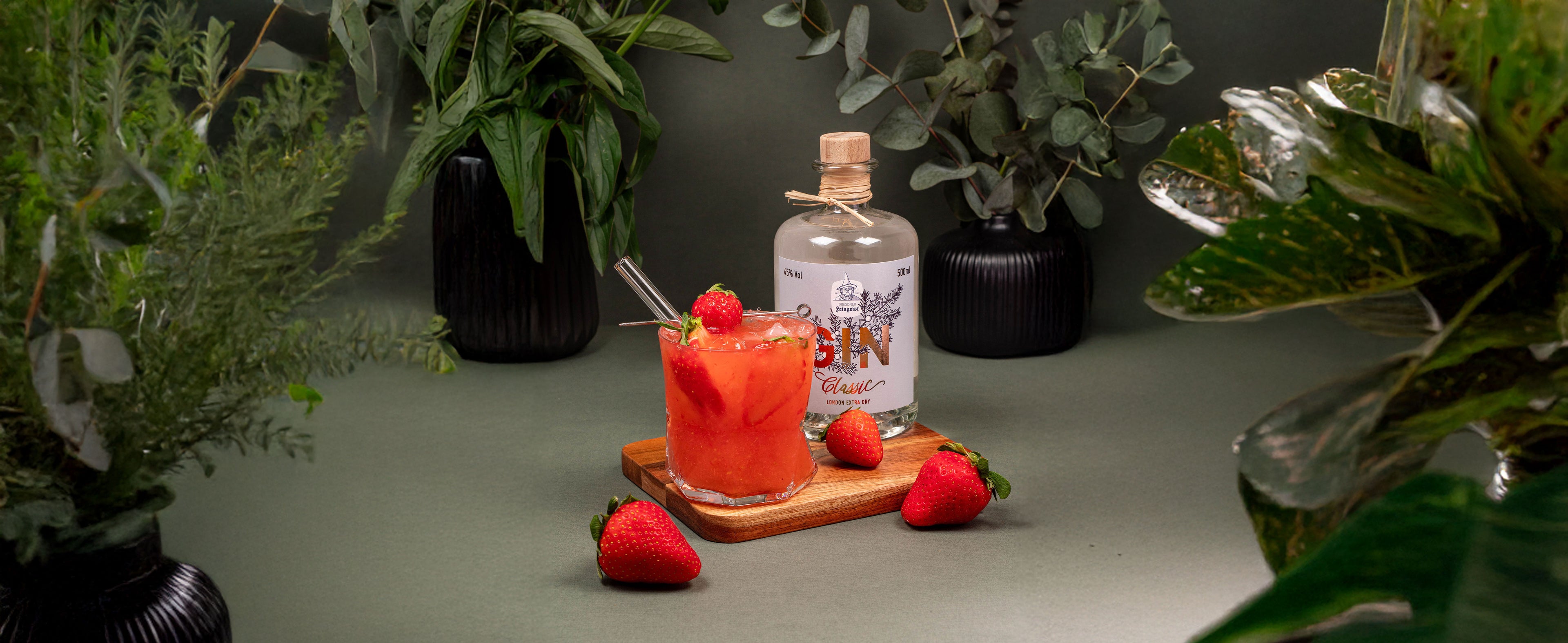 Der Dresdner Feingeist GIN Classic – London Extra Dry ist wacholderbetont, trocken und zitrisch. Genau diese klaren Aromen heben die Süße der Erdbeeren hervor und sorgen für einen ausgewogenen, eleganten Drink.