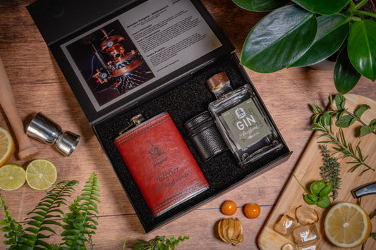 Tasting-Box mit Flachmann und 350ml GIN Bergfreund